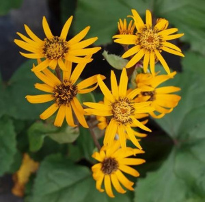 Оранжевые цветы. Лист зеленый, снизу - бронзовый.