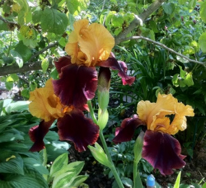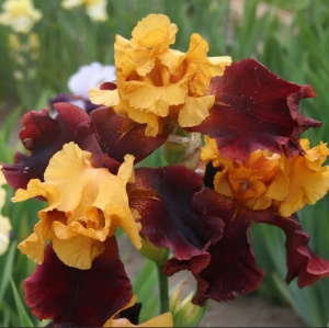 Высота растения 100см, верхние лепестки оранжевые с бордовыми прожилками, нижние — темно-бордовые.
