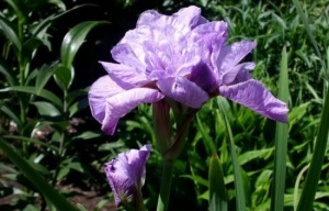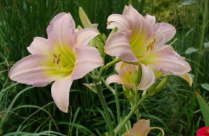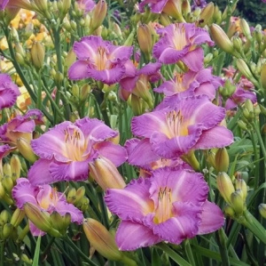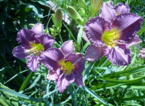 Цветок лавандовый с желтым горлом, крупный, ароматный. Цветение июнь-июль.