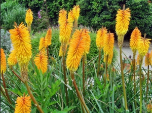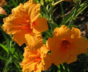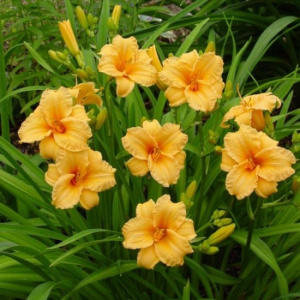 Высота растения 100см, цветки похожи на лилии, желто-оранжевые с темным рисунком. Цветение июль-август.