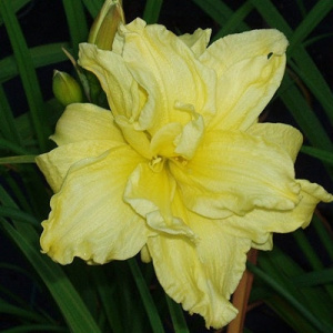 Высота растения 65см, цветок лимонный, махровый, повторное цветение. Цветение август-сентябрь