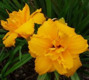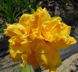 Махровый, золотисто-оранжевый, диаметр цветка 12 см.