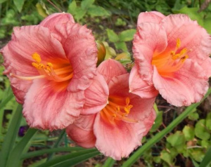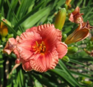 Высота растения 45см, цветки лососево-розовые, соцветие большое, плотное. Цветение июнь-июль.