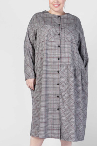 Вид: платье; Сезон: круглогодичный; Материал: 40% вискоза, 30% полиэстер, 25% шерсть, 5% эластан; Цвет: светло-серый; Узор: клетка; Фасон: прямой; Крой: свободный; Воротник: круглый; Вид рукава: втачной; Длина рукава: длинный; Длина: ниже колен; Детали: карманы; Фактура: трикотаж; Стиль: нарядная