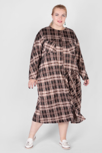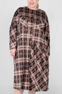 Вид: платье; Сезон: круглогодичный; Материал: 40% вискоза, 30% полиэстер, 25% шерсть, 5% эластан; Цвет: коричневый; Узор: клетка; Фасон: прямой; Крой: свободный; Воротник: круглый; Вид рукава: втачной; Длина рукава: длинный; Длина: ниже колен; Детали: карманы; Стиль: нарядная