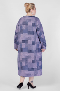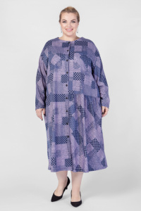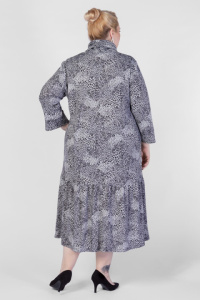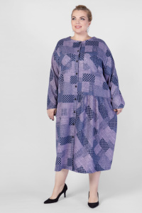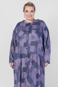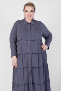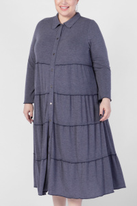 Платье женское с притачными планками на полочках. Застегивается на пуговицы. Рукава втачные, длинные. Полочка и спинка разрезаны на 4 яруса. Все части полочки и спинки соединены между собой накладными швами . Ткань платья отличается износостойкостью, хорошо держит форму, мягкая и приятная к телу.