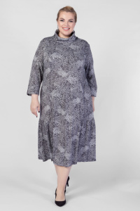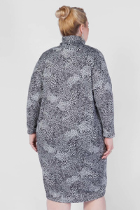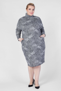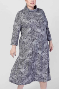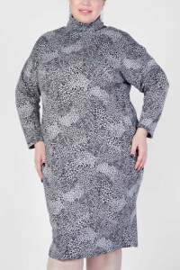 Вид: платье; Сезон: круглогодичный; Материал: 40% вискоза, 30% полиэстер, 25% шерсть, 5% эластан; Цвет: серый; Узор: Леопард; Фасон: платье; Крой: свободный; Воротник: хомут; Вид рукава: втачной; Длина рукава: длинный; Длина: миди; Фактура: джерси; Стиль: повседневный