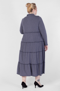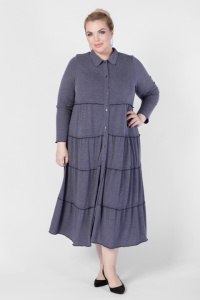 Вид: платье; Сезон: круглогодичный; Материал: 40% вискоза, 30% полиэстер, 25% шерсть, 5% эластан; Цвет: сине-серый; Узор: Однотон; Фасон: расклешенный; Крой: свободный; Воротник: отложной; Вид рукава: втачной; Длина рукава: длинный; Длина: миди; Детали: пуговицы; Фактура: джерси; Стиль: повседневный