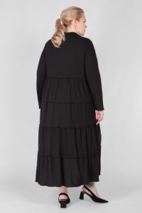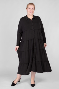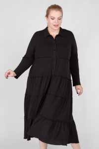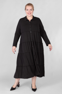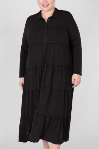 Вид: платье; Сезон: круглогодичный; Материал: 40% вискоза, 30% полиэстер, 25% шерсть, 5% эластан; Цвет: черный; Узор: Однотон; Фасон: расклешенный; Крой: свободный; Воротник: отложной; Вид рукава: втачной; Длина рукава: длинный; Длина: миди; Детали: пуговицы; Фактура: джерси; Стиль: повседневный