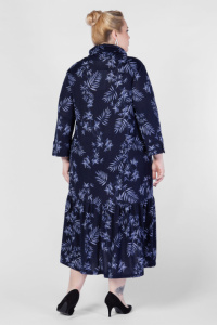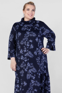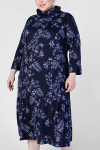 Вид: платье; Сезон: демисезон; Материал: 40% вискоза, 30% полиэстер, 25% шерсть, 5% эластан; Цвет: синий; Узор: листья; Фасон: прямой; Крой: свободный; Воротник: стойка; Вид рукава: втачной; Длина рукава: длинный; Длина: миди; Детали: рюша; Фактура: трикотаж; Стиль: повседневный