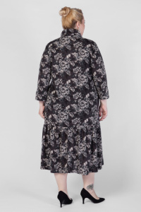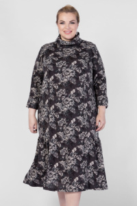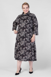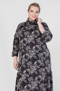 Вид: платье; Сезон: демисезон; Материал: 40% вискоза, 30% полиэстер, 25% шерсть, 5% эластан; Цвет: темно-серый; Узор: Цветы; Фасон: прямой; Крой: свободный; Воротник: стойка; Вид рукава: втачной; Длина рукава: длинный; Длина: миди; Детали: рюша; Фактура: трикотаж; Стиль: повседневный