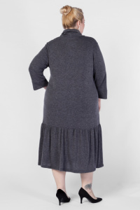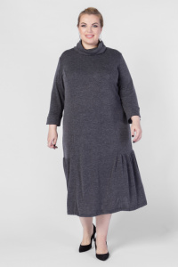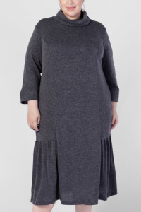 Вид: платье; Сезон: демисезон; Материал: 40% вискоза, 30% полиэстер, 25% шерсть, 5% эластан; Цвет: темно-серый; Узор: Однотон; Фасон: прямой; Крой: свободный; Воротник: стойка; Вид рукава: втачной; Длина рукава: длинный; Длина: миди; Детали: рюша; Фактура: трикотаж; Стиль: повседневный