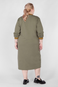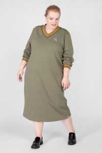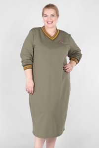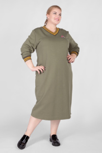 Вид: платье; Сезон: круглогодичный; Материал: 95% хлопок, 5% эластан; Цвет: хаки; Узор: Однотон; Фасон: приталенный; Крой: приталенный силуэт; Воротник: V-образный; Вид рукава: втачной; Длина рукава: 3/4; Длина: миди; Детали: аппликация; Фактура: трикотаж; Стиль: повседневный