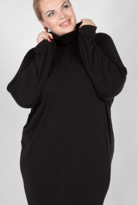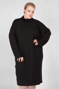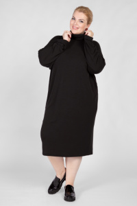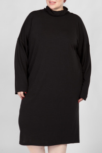 Вид: платье; Сезон: круглогодичный; Материал: 40% вискоза, 30% полиэстер, 25% шерсть, 5% эластан; Цвет: черный; Узор: Однотон; Фасон: платье; Крой: свободный; Воротник: хомут; Вид рукава: втачной; Длина рукава: длинный; Длина: миди; Фактура: джерси; Стиль: повседневный