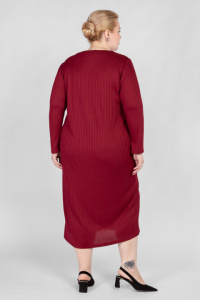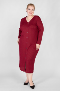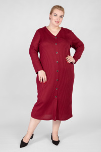 Вид: платье; Сезон: круглогодичный; Материал: 72% полиэстер, 25% вискоза, 3% эластан; Цвет: темно-красный; Узор: Однотон; Фасон: прямой; Крой: прямой; Воротник: V-образный; Длина рукава: длинный; Длина: ниже колен; Детали: пуговицы; Фактура: вязаный трикотаж; Стиль: повседневный