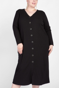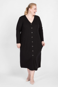 Вид: платье; Сезон: круглогодичный; Материал: 72% полиэстер, 25% вискоза, 3% эластан; Цвет: черный; Узор: Однотон; Фасон: прямой; Крой: прямой; Воротник: V-образный; Длина рукава: длинный; Длина: ниже колен; Детали: пуговицы; Фактура: вязаный трикотаж; Стиль: повседневный