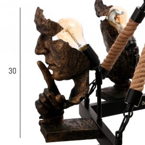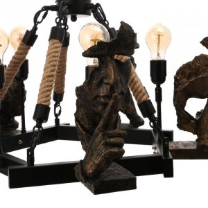 Страна: Китай; В боксе: 1 шт; Состав: Металл, текстиль, эпоксидная смола; Материалы: металл, текстиль, эпоксидная смола; Фасовка: по 1 шт; Индивидуальная упаковка: Картонная коробка; Размер упаковки: 55 см × 55 см × 46 см; Сертификат: ЕАС; Вид лампы: Накаливания; Количество ламп: 5; Стиль: Лофт; Цоколь: E27; Площадь освещения, м²: 10; Мощность на цоколь, Вт: 40; Лампа в комплекте: Нет; Материал основания: Металл; Цвет основания: Чёрный; Тип рассеивателя: Без плафонов; Тип крепления: На цепи; Цвет рассеивателя: Тёмные тона; Вид декора: Без декора; Материал рассеивателя: Гипс; Управление светильником: Без пульта