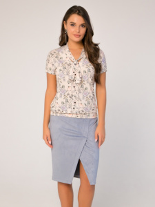 Расклешенная юбка А-силуэта с запахом. Выполнена из эко-замши. Верх юбки на поясе, высокая посадка. Застежка на завязки. Длина изделия 71 см. 90% полиэстер, 10% эластан
