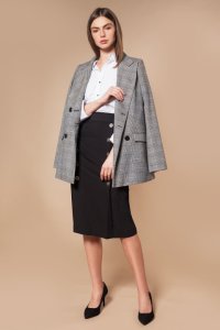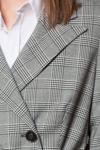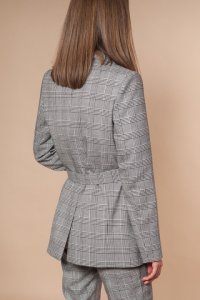 Жакет в актуальную черно-белую клетку. Двубортный, на подкладке. Супер трендовый элемент - ремень - из основной ткани с обтяжной пряжкой. Шлевки для ремня отсутствуют - благодаря этому жакет можно носить и с ремнем, и без, растегнутым для расслабленных образов. А также можно комбинировать его с другими ремнями, которые подойдут в лук! Высокое качество посадки и технологичность верхней одежды по российскому ГОСТ - произведено в Санкт-Петербурге.