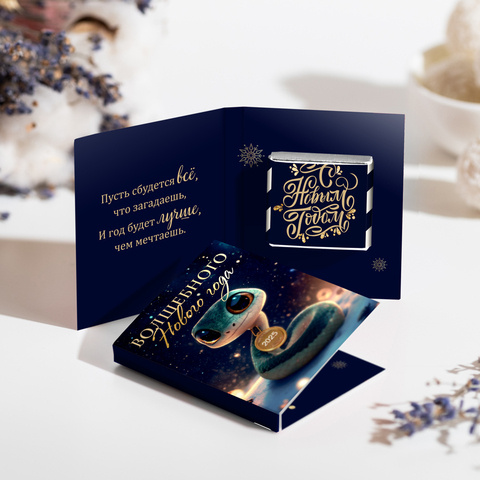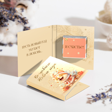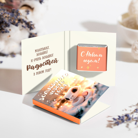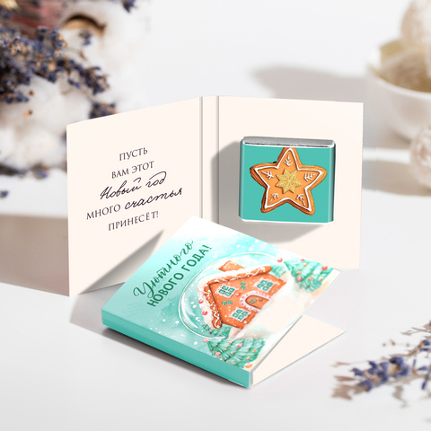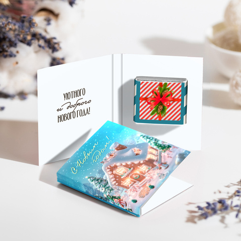 Внутри открытки - 2 шоколадки (вес каждой шоколадки: 5 гр., размер: 31 х 31 мм.)