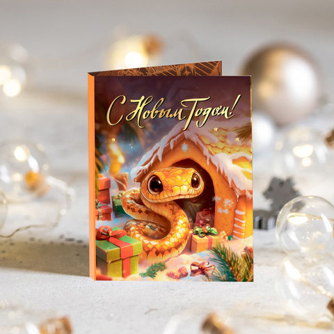 ★︎ Мини-открытка "С Новым годом! (оранжевая змея)"