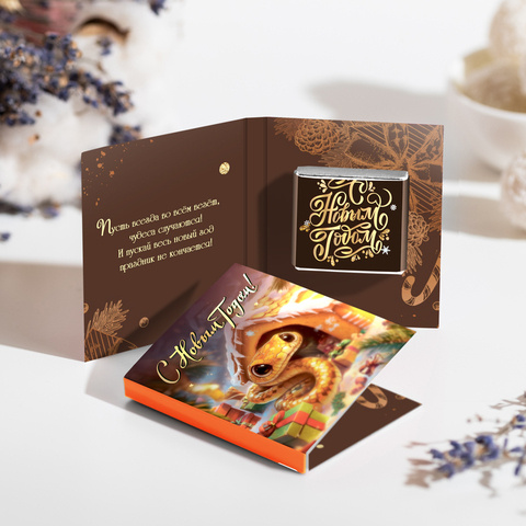 ★︎ Набор 12 шоколадок "С Новым годом с новым счастьем! (змея с Дедом Морозом)"