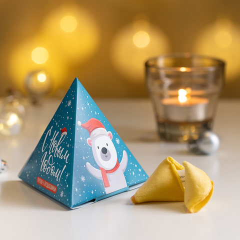 Печенье с предсказаниями "С новым годом (белый мишка на голубом)" 1шт
