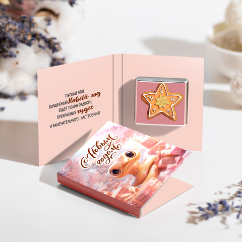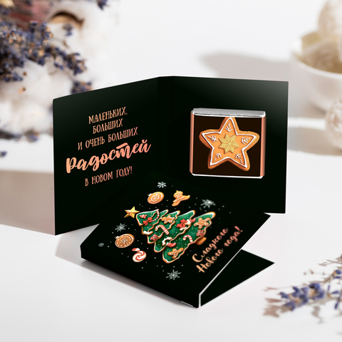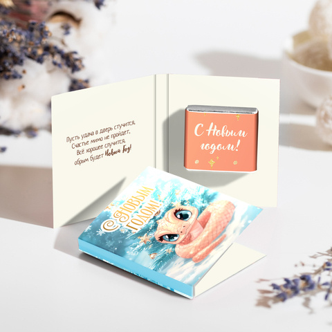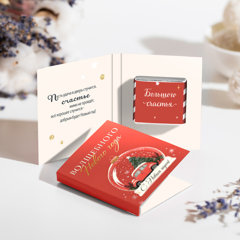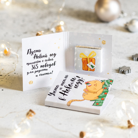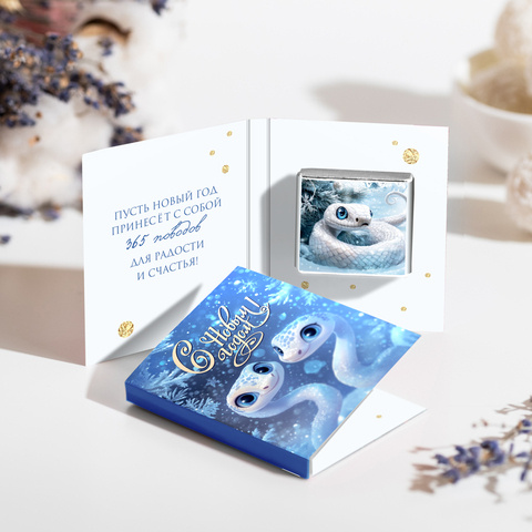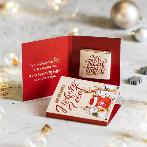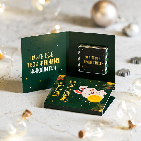 Внутри открытки - 2 шоколадки (вес каждой шоколадки: 5 гр., размер: 31 х 31 мм.)