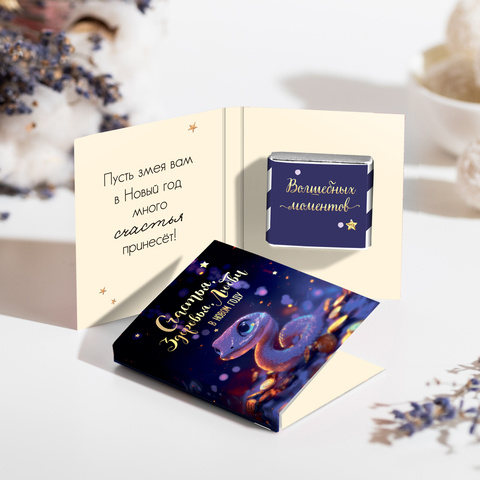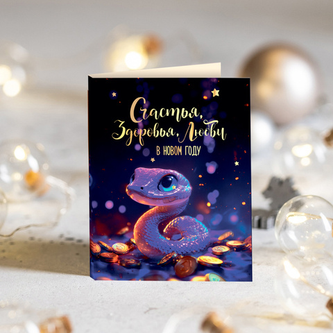 ★︎ Мини-открытка "Счастья, здоровья, любви в Новом году! (фиолетовая змея)"