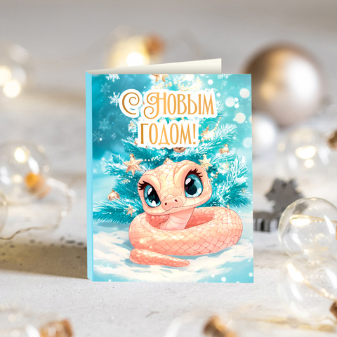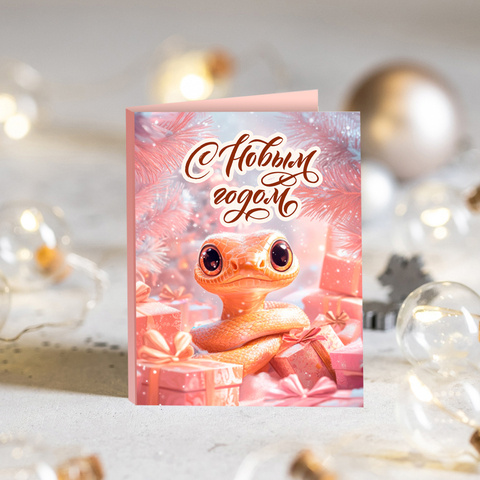 ★︎ Мини-открытка "С Новым годом! (змея на розовом фоне)"