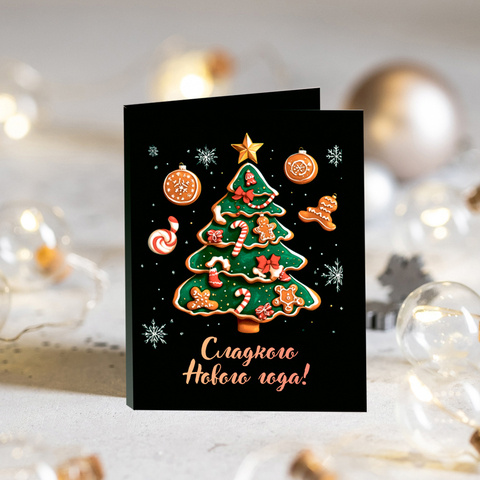 Мини-открытка "Сладкого Нового года (ёлка на тёмном фоне)"