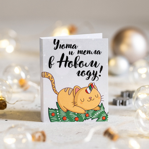 Мини-открытка "Уюта и тепла в Новом году!" (котик)