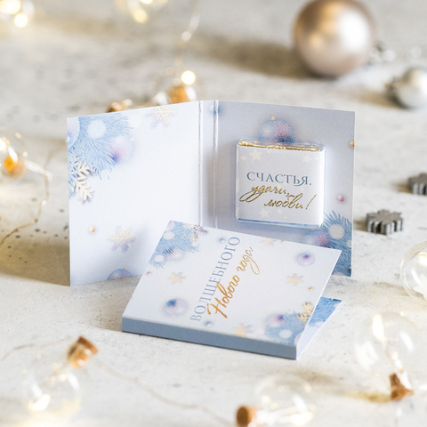 Мини-открытка "Волшебного Нового года!" (голубая)
