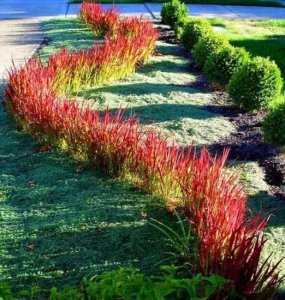 Листья узкие, заостренные, ярко-зеленые с красноватыми кончиками, отрастая, приобретают красную окраску, соцветия серебристые