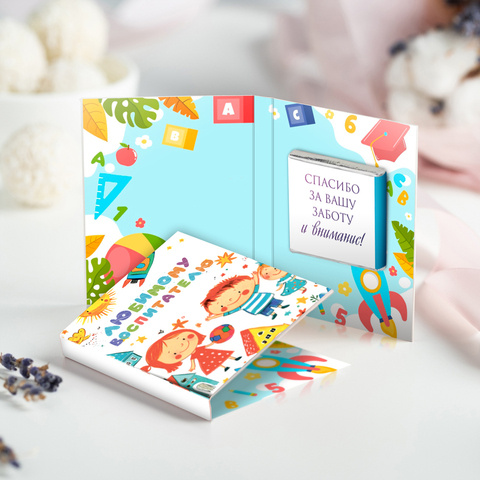 Шоколадка упакована в индивидуальную этикетку с пожеланием.