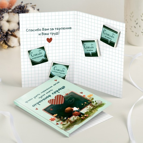 Внутри открытки - 4 шоколадки (вес каждой шоколадки: 5 гр., размер: 31 х 31 мм.)