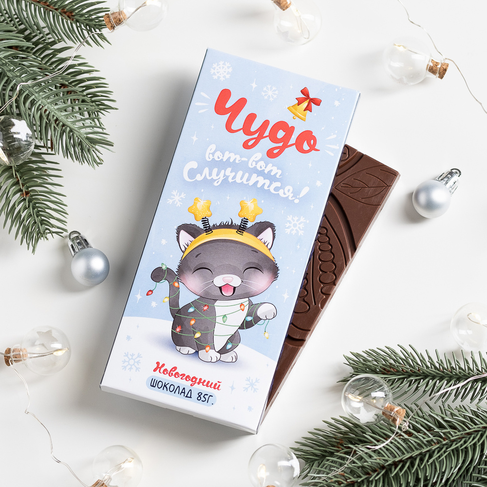Внутри плитка молочного шоколада в упаковке флоу-пак с содержанием 37% какао.