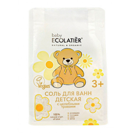 природная соль ECOLATIER&reg; Baby с экстрактами трав предназначена для купания детей 3+, обладает противовоспалительным, успокаивающим и общеукрепляющим действием, благотворно влияет на нервную систему малыша. Солевые ванночки снижают риск простудных заболеваний, укрепляют иммунитет малыша и мягко ухаживают за проблемной кожей.\r<br/>\r<br/>Экстракты ромашки&nbsp; и мяты являются природным асептиком, уменьшают воспаление и предотвращают раздражение кожи.&nbsp;\r<br/>Экстракты овса и солодки применяются как защитное, успокаивающее и смягчающее средство для проблемной кожи.