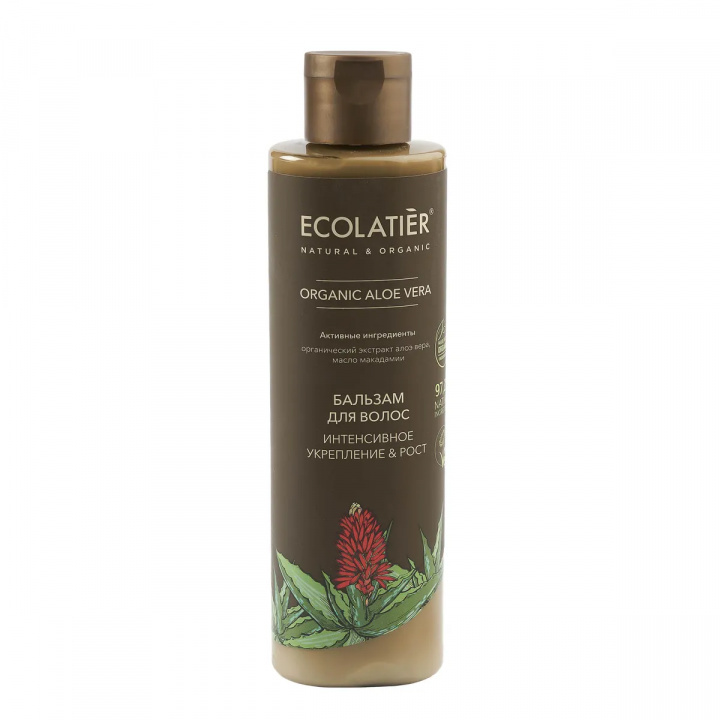 Бальзам ECOLATIER® Organic Aloe Vera хорошо питает и увлажняет волосы, возвращает им жизненную силу, делает волосы послушными и эластичными. Соответствует требованиям Vegan Society (Великобритания). Продукт содержит более 98% ингредиентов растительного происхождения. Органические ингредиенты: Органический экстракт алоэ вера содержит эфирные масла, ферменты, витамины, аминокислоты, минералы, полисахариды, фитонциды, обладает высокой био доступностью и является природным стимулятором регенерации клеток и тканей, обеспечивает глубокое увлажнение, успокаивает кожу, делает ее нежной, мягкой и ухоженной. Эффективно укрепляет волосы и благотворно влияет на кожу головы. Активные ингредиенты: Масло макадамии смягчает волосы, обогащает их микроэлементами и витаминами.