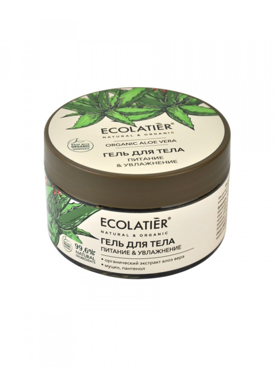 Гель для тела ECOLATIER Organic Aloe Vera обладает легкой текстурой, быстро впитывается без ощущения липкости. Глубоко питает и насыщает кожу влагой. Органические ингредиенты: Органический экстракт алоэ вера содержит витамины, аминокислоты, полисахариды, фитонциды и является природным стимулятором регенерации клеток и тканей.Муцин улитки содержит аллантоин, пептиды, эластин, коллаген и гиалуроновую кислоту, которые благотворно влияют на кожу, способствуют активному восстановлению клеток, увлажнению и омоложению кожи. В комплексе с алоэ вера оказывает непревзойденное увлажняющее действие. Массажными движениями нанесите гель на чистую кожу до полного впитывания. Для наружного применения.