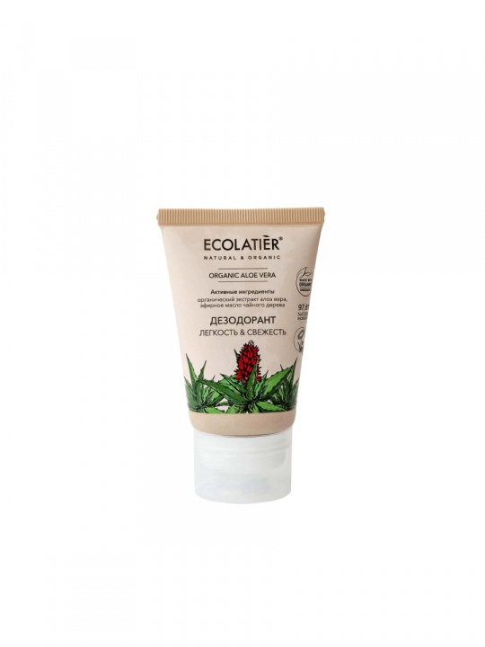 Дезодорант ECOLATIER Organic Aloe Vera на основе натуральных компонентов особенно бережно ухаживает за кожей, защищает от неприятного запаха, дарит легкий аромат, обеспечивает свежесть и комфорт. Не оставляет следов на одежде. Натуральное и безопасное средство. Содержит не менее 97% ингредиентов растительного происхождения. Органические ингредиенты: Сок органического алоэ вера содержит витамины, аминокислоты, минералы, полисахариды, фитонциды, обладает высокой биодоступностью и является природным стимулятором регенерации клеток и тканей, обеспечивает глубокое увлажнение, успокаивает кожу, делает ее нежной, мягкой и ухоженной. Рицинолеат цинка нейтрализует запах, обладает бактерицидным эффектом, дарит коже свежесть на долгое время. Выдавите небольшое количество продукта, нанесите на чистую сухую кожу с помощью аппликатора. Для наружного применения.