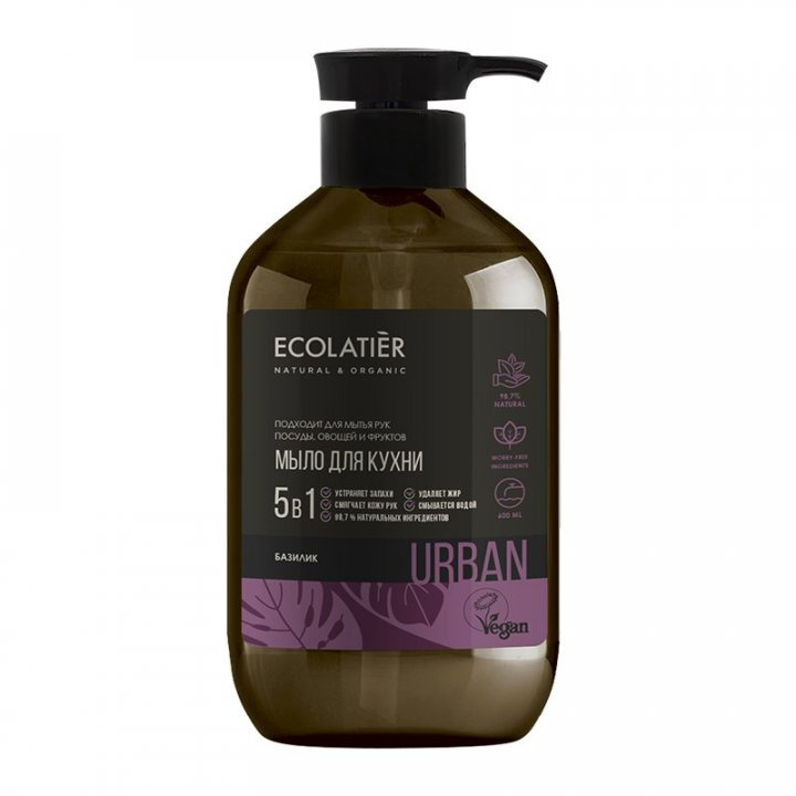 Кухонное мыло является универсальным средством для мытья рук, посуды и овощей. Формула разработана специально для эффективной и безопасной гигиены всей семьи, очищает, устраняет неприятные запахи, легко смывается и бережно ухаживает за кожей рук. Продукт содержит более 98% ингредиентов растительного происхождения. Активные ингредиенты. - Экстракт базилика обладает невероятным количеством полезных свойств. Является мощным антиоксидантом и антисептиком, отлично тонизирует и питает кожу. - Эфирное масло тимьяна нежно очищает, глубоко питает кожу витаминами и питательными веществами, прекрасно увлажняет и защищает кожу от стрессовых факторов. Благодаря особым активным веществам, защищает структуру клеточных мембран от свободных радикалов, помогает коже рук дольше оставаться молодой, гладкой и упругой. - Сок дерева Кротон Лехлера (Кровь Дракона), экстракт моринги, витамины В5, В6, С, Е стимулируют детокс клеток, регенерируют кожу, проявляют высокую антиоксидантную активность и улучшают барьерные функции кожи. Применение: нанесите мыло на влажную кожу рук, вспеньте и смойте теплой водой. Подходит для мытья посуды, овощей и фруктов. Для наружного применения.