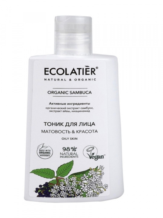 Тоник для лица ECOLATIER ORGANIC Sambuca убирает излишки себума с проблемной и скпонной к жирности кожи, сужает поры, снимает раздражение и тонизирует. Восстанавливает гидра-липидный баланс, подготавливает кожу к дальнейшему уходу. Соответствует требованиям Vegan Society (Великобритания). Продукт содержит более 98% ингредиентов растительного происхождения. Органические ингредиенты: Органический экстракт самбуки содержит уникальные фитокомпоненты, которые эффективно успокаивают кожу, устраняют отечность. Самбука является природным антиоксидантом, насыщает кпетки кислородом и защищает от воздействия свободных радикалов. Косметика для лица с экстрактом самбуки предназначена для ухода за проблемной кожей. Активные ингредиенты: Экстракт айвы способствует сужению пор и нормализует выработку кожного себума, обладает матирующим эффектом, разглаживает кожу, восстанавливает ее эластичность. Ниацинамид - основной элемент в восстановительном процессе клеток.