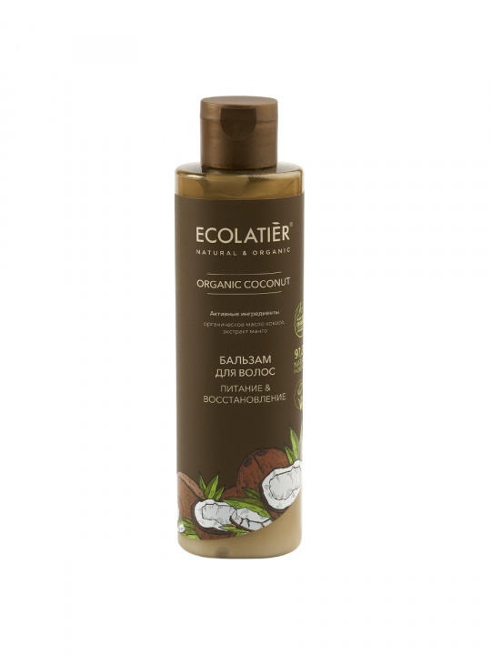 Бальзам для волос ECOLATIER Organic Coconut, благодаря активным компонентам в составе, эффективно питает и уплотняет волосы, защищает от ломкости и стрессов.Соответствует требованиям Vegan Society (Великобритания). Продукт содержит более 98% ингредиентов растительного происхождения.Органические ингредиенты: Органическое масло кокоса - ценный косметический компонент, богато насыщенными жирными кислотами, витаминами группы В и минералами. Усиливает барьерную функцию кожи, препятствует обезвоживанию. Эффективно увлажняет волосы, восстанавливает секущиеся кончики, защищает от негативных воздействий окружающей среды. Результатом применения косметики с маслом кокоса является бархатистая, мягкая и гладкая кожа и блестящие волосы.Активные ингредиенты:Экстракт манго активно увлажняет волосы и кожу головы, повышает выработку коллагена и эластина.Нанесите небольшое количество бальзама на влажные волосы на 1-2 минуты, смойте водой. Для наружного применения.