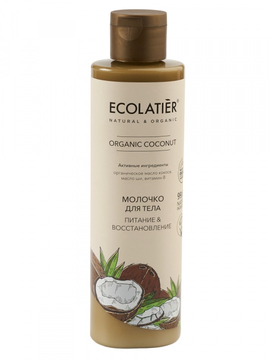 Насыщенное молочко для тела ECOLATIER Organic Coconut необычайно богато жирными кислотами, аминокислотами и витаминами. Легко наносится, глубоко увлажняет обезвоженную кожу и восстанавливает гидро липидный баланс клеток кожи. Соответствует требованиям Vegan Society Великобритания. Продукт содержит более 99% ингредиентов растительного происхождения. Органические ингредиенты: Органическое масло кокоса ценный косметический компонент, богато насыщенными жирными кислотами, витаминами группы В и минералами. Усиливает барьерную функцию кожи, препятствует обезвоживанию. Результатом применения косметики с маслом кокоса является бархатистая, мягкая и гладкая кожа. Массажными движениями нанесите молочко на чистую кожу до полного впитывания. Эффект усилится, если перед применением очистить кожу при помощи скраба. Для наружного применения.