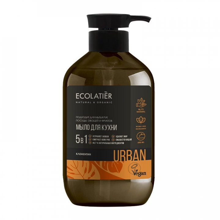 Кухонное мыло является универсальным средством для мытья рук, посуды и овощей. Формула разработана специально для эффективной и безопасной гигиены всей семьи, очищает, устраняет неприятные запахи, легко смывается и бережно ухаживает за кожей рук. Продукт содержит более 98% ингредиентов растительного происхождения. Активные ингредиенты. - Экстракт клементина деликатно очищает, обладает антиоксидантным действием, способствует оздоровлению кожи, омолаживает, смягчает, способствует сохранению влаги в клетках кожи. - Эфирное масло лайма улучшает обменные процессы в клетках кожи, тонизирует и увлажняет, благодаря чему она выглядит красивой и ухоженной. Защищает от преждевременного старения. - Сок дерева Кротон Лехлера (Кровь Дракона), экстракт моринги, витамины В5, В6, С, Е стимулируют детокс клеток, регенерируют кожу, проявляют высокую антиоксидантную активность и улучшают барьерные функции кожи. Применение: нанесите мыло на влажную кожу рук, вспеньте и смойте теплой водой. Подходит для мытья посуды, овощей и фруктов. Для наружного применения.