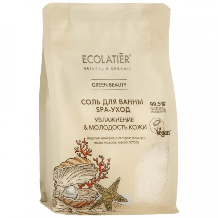 Ароматная, насыщенная соль для ванн ECOLATIER Green Beauty дарит удовольствие и создает атмосферу ароматерапии. Благодаря микроэлементам и натуральным экстрактам в составе, благоприятно воздействует на кожу, способствует ее увлажнению и обновлению, восстанавливает силы, дарит легкий аромат и прекрасное настроение. \r<br/>Морские минералы богаты микро- и макроэлементами, благоприятно влияют на состоянии кожи, стимулируют процесс обновления клеток, освежают и преображают кожу. Масло жожоба богато аминокислотами и витамином E, глубоко проникая в кожу, ускоряет процесс регенерации клеток, способствует сохранению влаги.