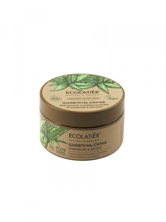 Шампунь - скраб ECOLATIER, благодаря натуральным активным компонентам в составе, делает процедуру очищения кожи головы и волос нежной и приятной. Скрабирующие частицы морской соли обеспечивают микромассаж и глубокое очищение кожи от лишнего себума и средств для укладки, активизируют кровообращение и клеточное дыхание кожи. Соответствует требованиям Vegan Society (Великобритания). Продукт содержит более 97% ингредиентов растительного происхождения.Органические ингредиенты: Органический экстракт алоэ вера содержит витамины, аминокислоты, минералы, полисахариды, фитонциды, обладает высокой био доступностью и является природным стимулятором регенерации клеток и тканей, обеспечивает глубокое увлажнение кожи головы и волос. Масло бабассу благоприятно воздействует на кожу головы, устраняет сухость, зуд и перхоть. Массажными движениями нанесите небольшое количество скраба на влажные волосы и кожу головы, вспеньте и смойте водой. Для наружного применения.