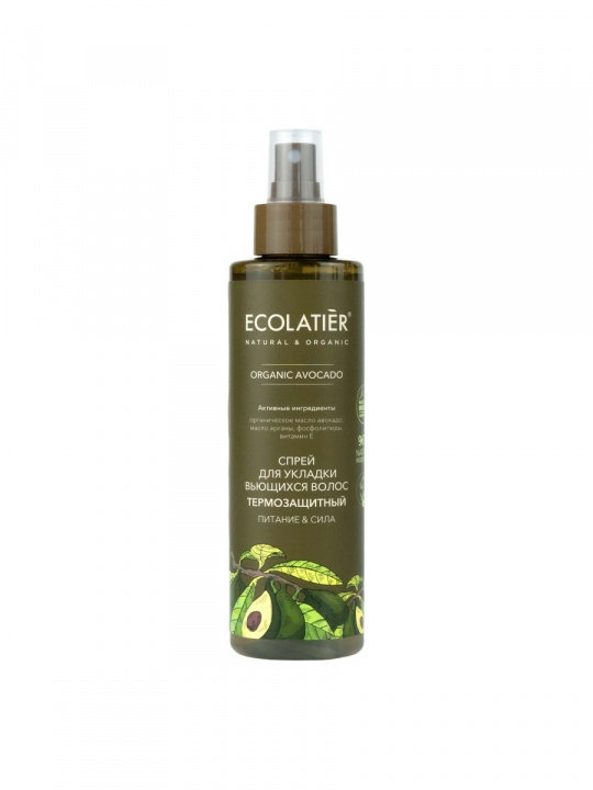 Спрей для укладки вьющихся волос Organic Avocado предназначен для укладки и защиты при горячем стайлинге. Питает волосы, делает их эластичными и блестящими.Органическое масло авокадо, полученное способом холодного прессования, отличается высоким содержанием жирных кислот, витаминов и минеральных веществ оказывает благотворное влияние на волосы и кожу головы, эффективно укрепляет и питает их. Предохраняет от негативного воздействия ультрафиолетовых лучей и высоких температур при укладке феном.Масло арганы защищает волосы от воздействия неблагоприятных факторов, интенсивно увлажняет и питает их, делая более сильными и блестящими.Фосфолипиды повышают барьерные функции, восстанавливают липидный баланс кожи головы.Витамин Е питает волосяные фолликулы, укрепляет волосы, придает им эластичность и блеск.
