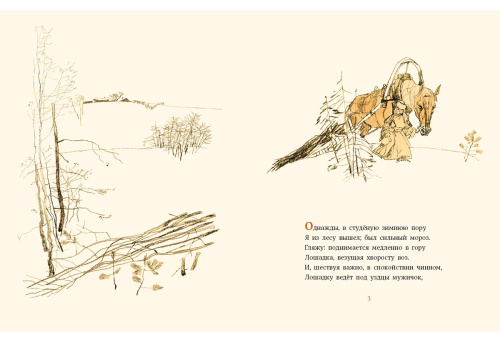 Маленький мальчик Влас понимает важность своей работы в семье. Он гордится тем, что ему доверили такое важное дело, как помогать отцу подвозить дрова.